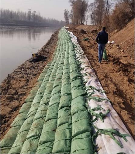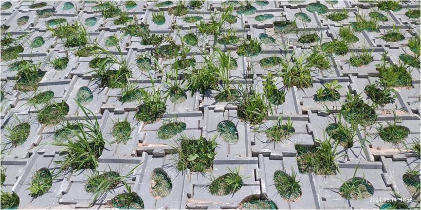 可根據現場邊坡條件選擇合適的植生袋規格,將多孔種植顆粒以及植物草種子填充到植生袋中,再疊碼鋪設到邊坡上。