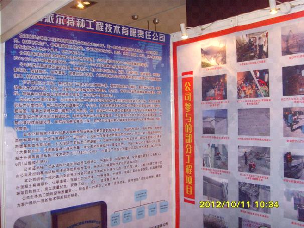 2012年10月11~12日,由中國大壩協會主辦,二灘水電開發有限責任公司承辦的中國大壩協會2012年年會在成都順利召開,此次會議的主題是—水庫大壩建設與管理中的技術進展,出席此次會議的有國內外領導、專家、學者共計五百余人,宜昌瑞派爾特種工程技術有限責任公司作為會員單位由康德忠董事長帶隊一行3人參加了此次盛會,并在大會會場布展,有力的宣傳了公司對外形象。